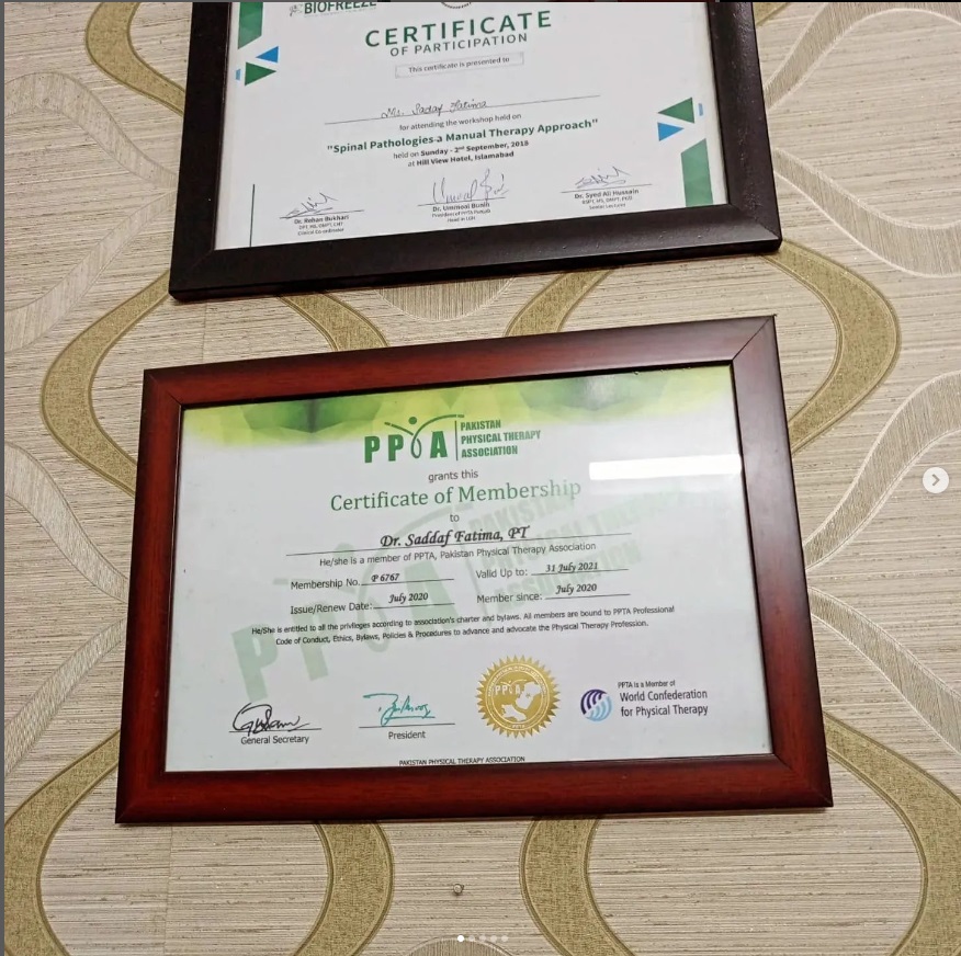 - Dr. Sadaf Fatima (Physiotherapist D.P.T MPPTA)